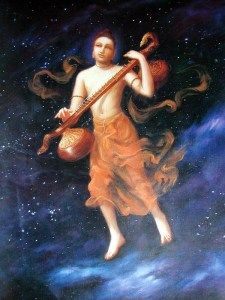 Le dernier ouvrage de Vyasa fut le Bhagavatam qu’il entreprit à l’instigation de Devarshi Narada*, le sage céleste, qui vint un jour le voir et lui conseilla de l’écrire, sans lequel son but dans la vie ne serait pas atteint.