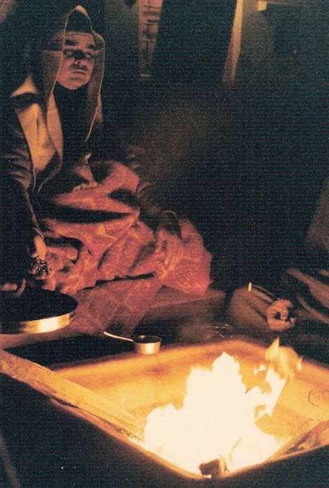 Offrandes : Des offrandes telles que du ghee, des céréales, des herbes et du bois sont offertes dans le feu sacré tout en récitant des mantras, symbolisant l’abandon, la gratitude et la dévotion.