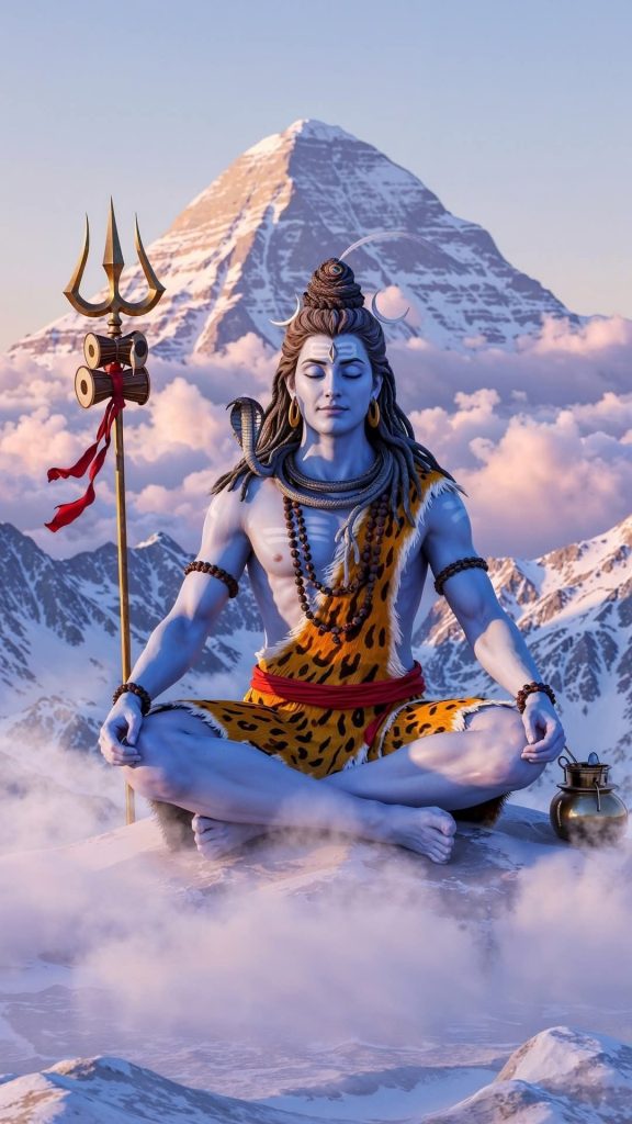Il est Celui qui veille dans la nuit des montagnes, Le trident à la main, Le silence plus fort que la parole. Ses yeux sont des galaxies calmes, Et l’Univers s’agenouille devant Son souffle.