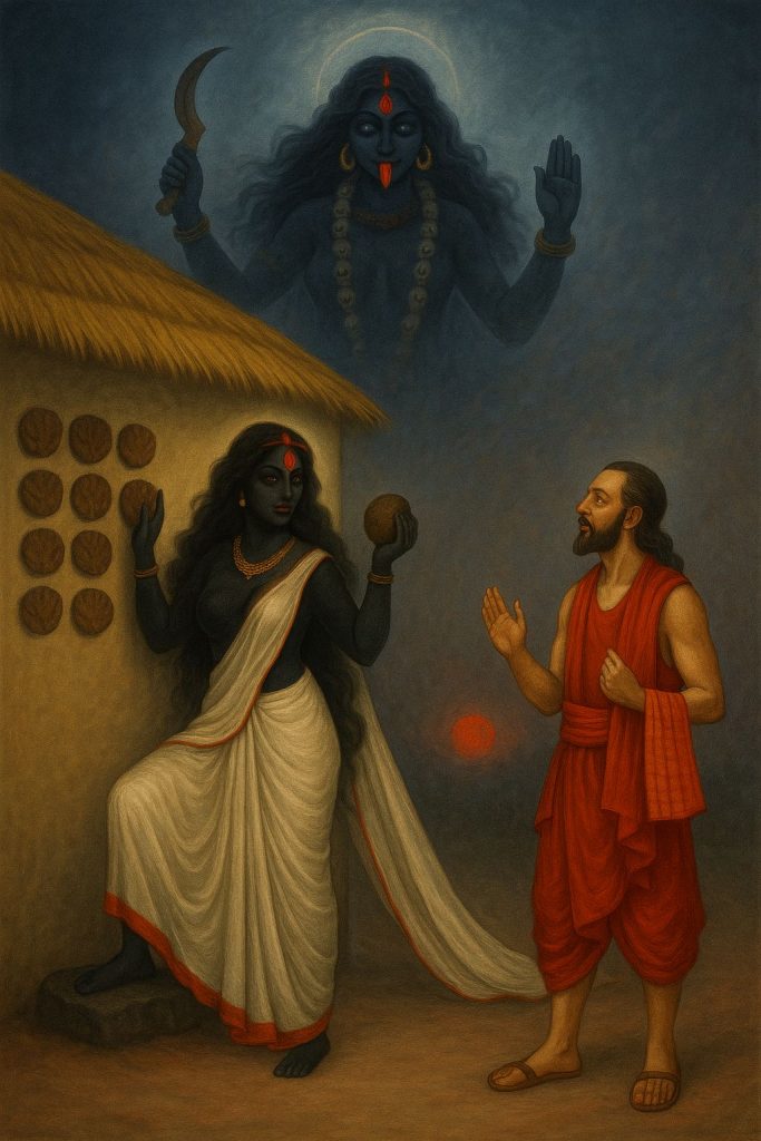 Que ta prière à Elle soit secrète, que nul n’en sache. À quoi bon ces poupées de métal ou de cuivre ou de terre ? Ne sais-tu pas, insensé, que l’univers entier est l’image de la Mère ? Tu apportes une poignée de graines, effronté, comme une offrande à la Mère, à Celle qui nourrit le monde d’aliments délicieux ! À quoi bon, fou, illuminer ainsi de lanternes, de bougies et de lampes ? Fais plutôt que grandisse la lumière de l’esprit, qu’il dissipe sa propre ténèbre, nuit et jour. Tu as amené d’innocentes chevrettes au sacrifice.