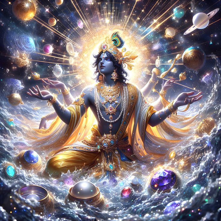 7. Contemple, rassemblé ici dans mon corps – Ô Gudaresa – l’univers entier avec les êtres mobiles et immobiles, et tout ce que tu désires voir d’autre.